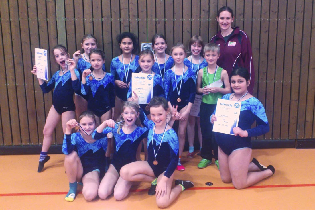 Bei den Kleinsten schaffte Naemi Himmel mit dem 3. Platz den Sprung auf das Podest; zudem zeigten hier Amelie Grawe, Lena Jochim und Rebekka Hofmann mit Plätzen unter den Top 10, dass sie trotz Aufregung, da es ihr erster Wettkampf war, die Übungen gut tunrten. Auch in der Stufe P 3, Jahrgang 2003 und jünger, starteten drei Turnerinnen; Anne Hühn, Neele Hildebrandt und Büsra Kapucu schlugen sich in der starken und großen Konkurrenz gut. Die Trainerinnen und Kinder konnten mit den Ergebnissen zufrieden sein und auf einen aufregenden Tag zurückblicken. Ein Dankeschön geht an die Kampfrichter Yvonne Schmitt und Tina Lerchl und die Betreuerin Eva.