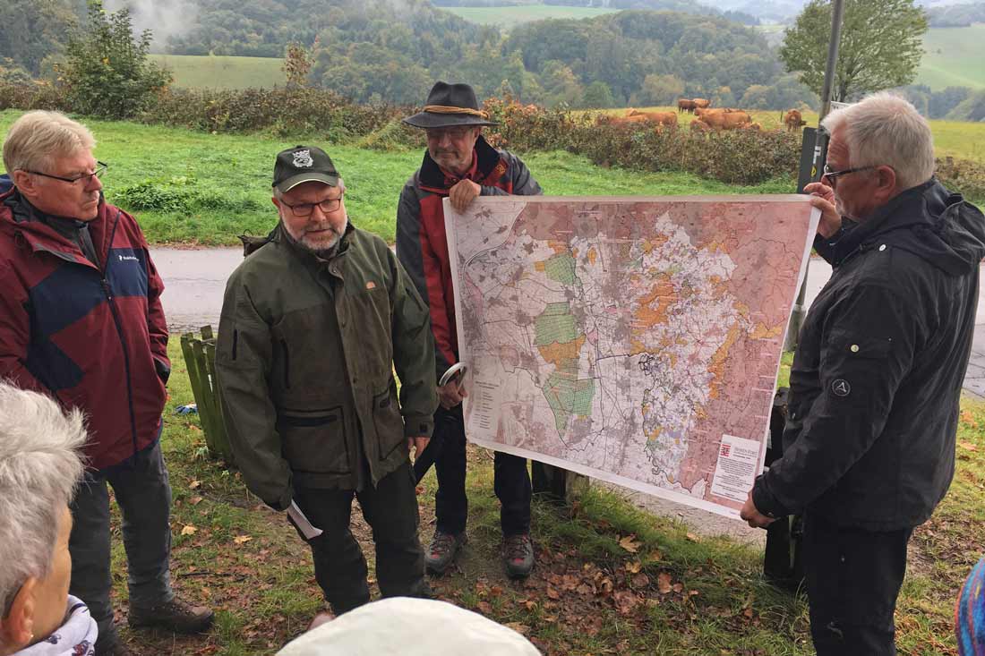 Von besonderem Interesse waren Fragen zum Borkenkäfer und zur besonderen Bedeutung der Buchenwälder auch im gesamteuropäischen Kontext. So fanden die Erläuterung, der mit einem „H“ gekennzeichneten Bäume besondere Aufmerksamkeit. Diese Habitate dienen der Erhaltung der einzelnen Art und sind bei den Buchen besondere Exemplare, die auch Heimat für viele Waldbewohner bieten. Der Einklang der Waldbewohner mit den Waldnutzern war ebenfalls ein Thema, das sich beim Spaziergang zu anregenden Gesprächen eignete. Vorstandsvorsitzender Knut Roggatz bedankte sich abschließend bei Werner Kluge für die akribische Vorbereitung und bei den Teilnehmern, die trotz der negativen Witterungsprognosen mit einer zweistündigen Trockenphase belohnt wurden.
