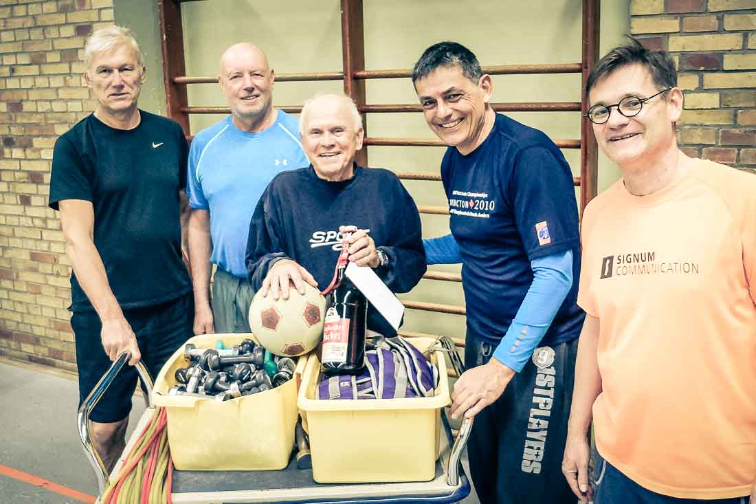 Der TV Reisen gratulierte seinem Ehrenmitglied Albert Wetzel zum 80. Geburtstag. „ Gerne und oft gratulieren wir unseren Ehrenmitgliedern zu runden Geburtstagen. Das besondere bei Albert Wetzel ist jedoch, dass er als Übungsleiter immer noch für drei Aktivitäten verantwortlich ist und hoffentlich lange bleiben will“, so Knut Roggatz, Vorstandsvorsitzender des Familiensportvereins aus dem Birkenauer Ortsteil. Wetzel war früher mit seinem Partner Dieter Holzwarth ein angesehenes Handballschiedsrichtergespann. Er war eng mit der Entwicklung des Handballs in Reisen verbunden und sorgt heute als Fitnesstrainer mit ausgewogenen Übungen dafür, dass die Alte Herren und die Jedermänner des Vereins beweglicher bleiben. In diesem Zusammenhang besonders erwähnenswert, dass er nach wie vor alle Übungen vor macht und beim Fußballtennis immer noch mit Begeisterung und Erfolg die Gegner austrickst. Daneben hat er Nordic-Walking Gruppen initiiert, die sich immer mittwochs an der frischen Luft an den Hügeln des Weschnitztales bewegen. Den ältesten Übungsleiter des Vereins überraschten einige seiner Schützlinge bei der Vorbereitung einer Übungsstunde und übergaben ein kleines Präsent.